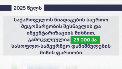სსიპ სოფლის მეურნეობის სამეცნიერო-კვლევითი ცენტრის ნიადაგის ნაყოფიერების კვლევის სამსახურის მიერ, 2025 წელს, შვიდ მუნიციპალიტეტში შესწავლილ იქნა 25 000 ჰექტარი ნიადაგის…