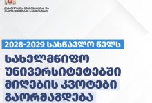 საქართველოს მთავრობის გადაწყვეტილებით, 2028-2029 სასწავლო წელს სახელმწიფო უნივერსიტეტებში სტუდენტთა მიღების კვოტები გაორმაგდება, ვინაიდან მე-11 და მე-12 კლასების მოსწავლეები სკოლებში სწავლას…