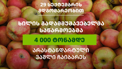 „არასტანდარტული ვაშლის რეალიზაციის ხელშეწყობის“ სახელმწიფო პროგრამა მიმდინარე წლის 9 სექტემბრიდან ვაშლის მოსავლის დაბინავების პროცესში ფერმერთა ხელშეწყობის მიზნით ამოქმედდა. პროგრამის ფარგლებში,…
