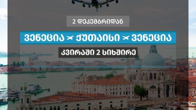 „ავიაკომპანია Wizz Air მიმდინარე წლის 2 დეკემბრიდან რეისებს შეასრულებს ვენეცია-ქუთაისი-ვენეციის მიმართულებით, რაც კიდევ ერთი მნიშვნელოვანი წინგადადგმული ნაბიჯია როგორც ტურიზმის ხელშეწყობის…