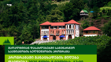 განაცხადების მიღება 8 ივლისს, 12:00 საათზე დაიწყება და პროგრამის ბიუჯეტის (5 მლნ ლარი) ამოწურვამდე გაგრძელდება. „მაღალმთიან დასახლებებში სამეწარმეო საქმიანობის ხელშეწყობის…