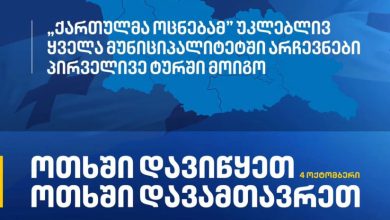 „ქართული ოცნება“: უკლებლივ ყველა მუნიციპალიტეტში არჩევნები პირველივე ტურში მოვიგეთ, ოთხში დავიწყეთ, ოთხში დავამთავრეთ