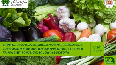 ერთწლოვანი კულტურების მოყვანის ხელშეწყობისთვის, სახელმწიფო პროექტის ფარგლებში, 22 მარტიდან დღემდე, 131,4 მილიონი ლარის ღირებულების 8,651 სესხია გაცემული