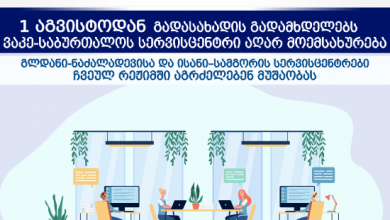 ფინანსთა სამინისტროს შემოსავლების სამსახური შეგახსენებთ, რომ 1 აგვისტოდან გადასახადის გადამხდელებს ვაკე-საბურთალოს მოქალაქეთა მომსახურების სერვისცენტრი აღარ მოემსახურება. აქვე გაცნობებთ, რომ შემოსავლების…