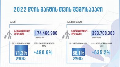 ტურიზმის ეროვნული ადმინისტრაცია მარტში საერთაშორისო ტურიზმიდან მიღებული შემოსავლების სტატისტიკურ ინფორმაციას ავრცელებს. 2022 წლის მარტის თვეში მოგზაურობიდან მიღებულმა შემოსავალმა 174,466,980…