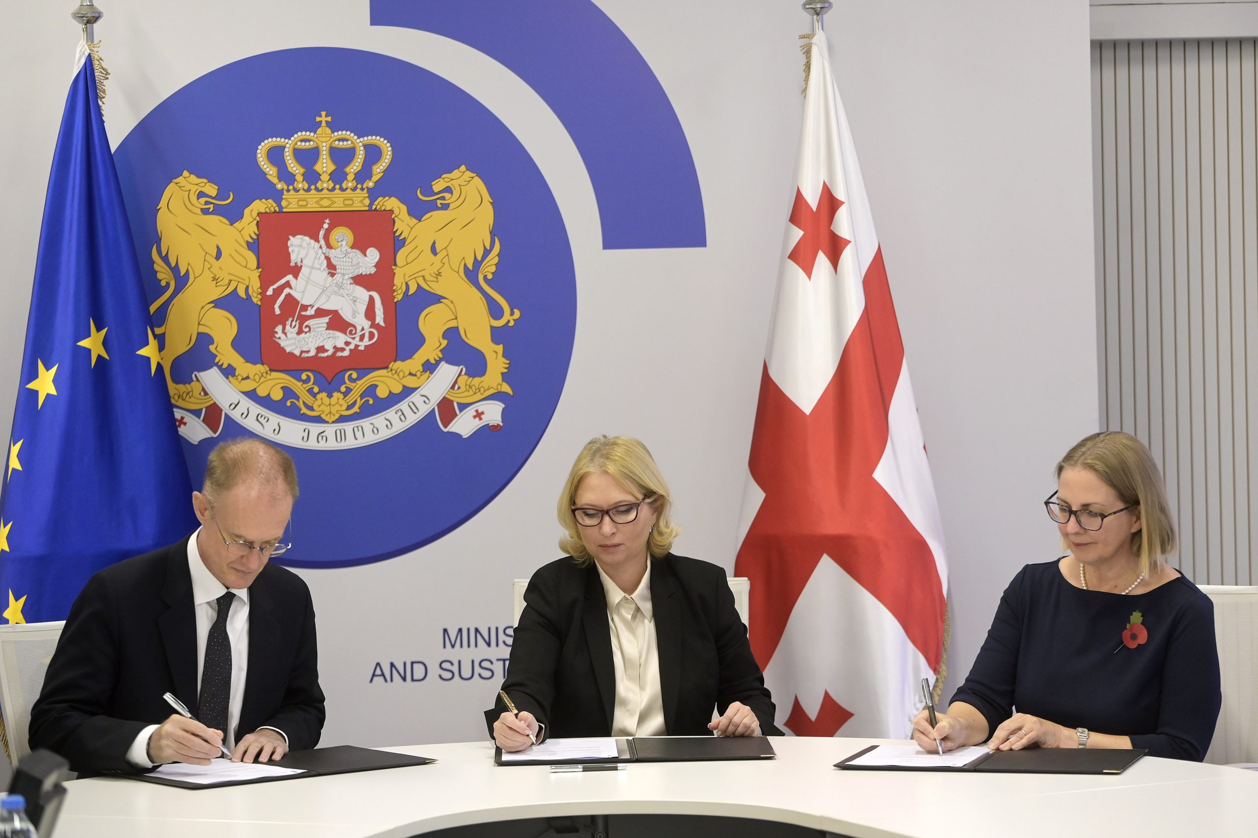 ეკონომიკისა და მდგრადი განვითარების მინისტრმა ნათია თურნავამ, გაეროს განვითარების პროგრამის (UNDP) მუდმივმა წარმომადგენელმა ნიკ ბერესფორდმა და დიდი ბრიტანეთის მისიის ხელმძღვანელის მოადგილემ კლერ ოლბრესმა ხელი მოაწერეს ურთიერთგაგების მემორანდუმს. ხელმოწერა საქართველოს ეკონომიკისა და მდგრადი განვითარების სამინისტროში გაიმართა.