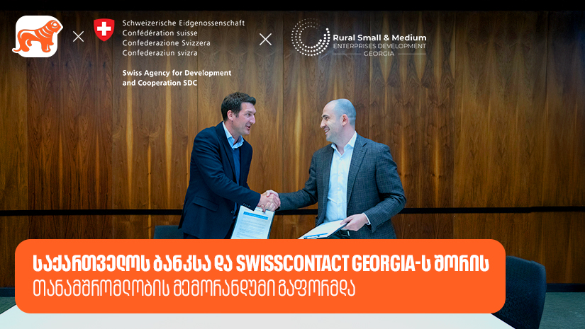 საქართველოს ბანკი, როგორც მცირე და საშუალო ბიზნესის გაძლიერებაზე ორიენტირებული ფინანსური ინსტიტუტი, ახალი შესაძლებლობების შექმნასა და პარტნიორული ქსელის განმტკიცებას აგრძელებს. ამ მიზნით, ბანკმა Swisscontact-თან ურთიერთთანამშრომლობის მემორანდუმი გააფორმა, რომელიც „რეგიონებში მცირე და საშუალო საწარმოების განვითარების პროექტს“ (RSMEDP) ახორციელებს, Mercy Corps-თან და Springfield Centre-თან ერთად.