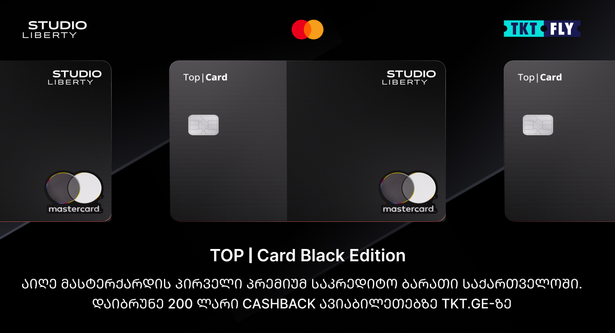 Mastercard და ლიბერთის პერსონალური ბანკინგის მიმართულება, სტუდიო ლიბერთი, მომხმარებელს პრემიუმ საბანკო მომსახურებაში ახალ სტანდარტს სთავაზობენ – Top|Card Black Edition საქართველოში Mastercard-ის პირველი საკრედიტო ბარათია, რომელიც შექმნილია პრემიუმ სერვისებზე ორიენტირებული მომხმარებლებისთვის და აერთიანებს ფინანსურ და სამოგზაურო უპირატესობებს.