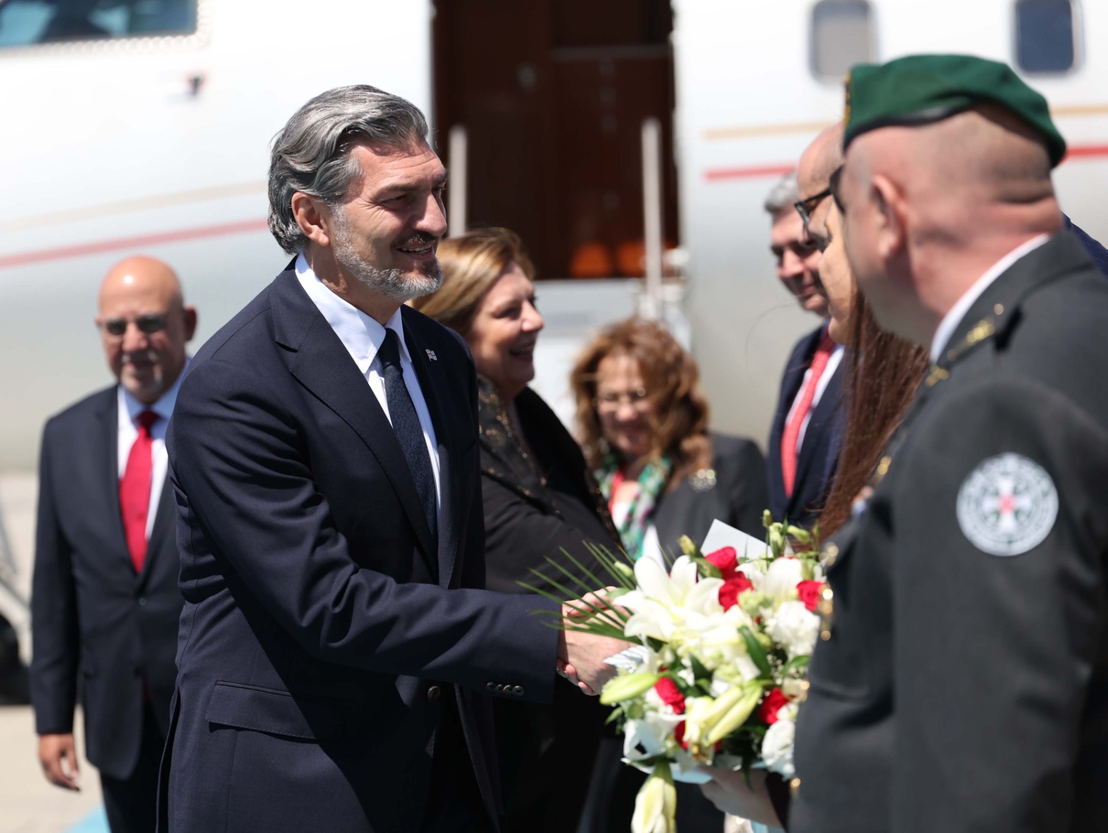 „ესენბოღას” საერთაშორისო აეროპორტში საქართველოს პრეზიდენტის დახვედრის ოფიციალური ცერემონია გაიმართა. მიხეილ ყაველაშვილსა და ქართულ დელეგაციას აეროპორტში თურქეთის ხელისუფლების მაღალი რანგის წარმომადგენლები დახვდნენ.