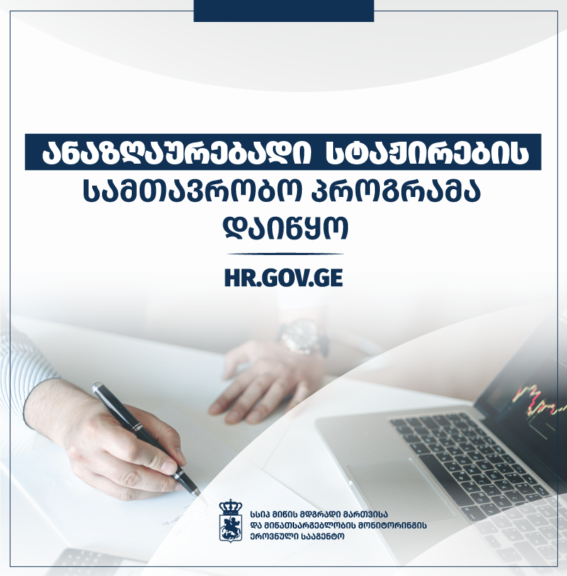 საქართველოს პრემიერ-მინისტრის ირაკლი კობახიძის გადაწყვეტილებით, სახელმწიფო უწყებებში 3-თვიანი ანაზღაურებადი სტაჟირების პროგრამა დაიწყო.