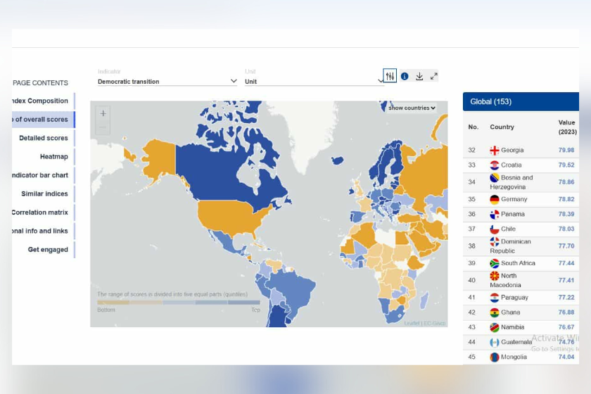 ევროკომისია თანმიმდევრული განვითარების ანგარიშის ფარგლებში დემოკრატიული გარდაქმნის ინდექსს აქვეყნებს.