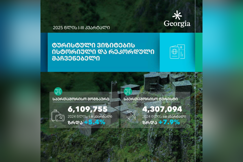 რაც შეეხება 2025 წლის III კვარტალში დაფიქსირებულ მაჩვენებლებს, ივლისი-სექტემბრის პერიოდში საერთაშორისო ტურისტული ვიზიტების ასევე რეკორდული მაჩვენებელი დაფიქსირდა და ისტორიულმა მაქსიმუმი 2 მილიონი ვიზიტი შეადგინა.