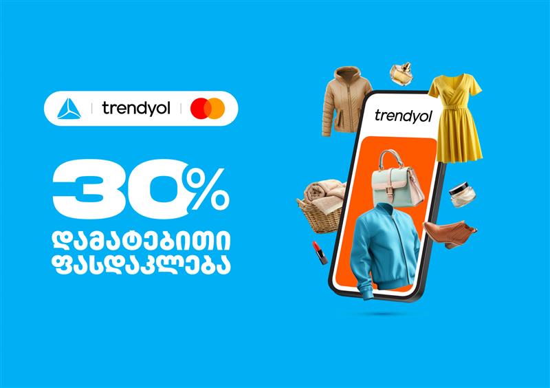 26 ოქტომბრის ჩათვლით, Trendyol-ზე ახალი თიბისი Mastercard ბარათით, ახალი თიბისი კონცეპტ Mastercard ბარათით ან ერთგული Mastercard საკრედიტო ბარათით გადახდისას, მომხმარებლები შერჩეულ პროდუქტებზე მიმდინარე ფასდაკლებებთან ერთად, დამატებით 30%-იან ფასდაკლებას იღებენ.