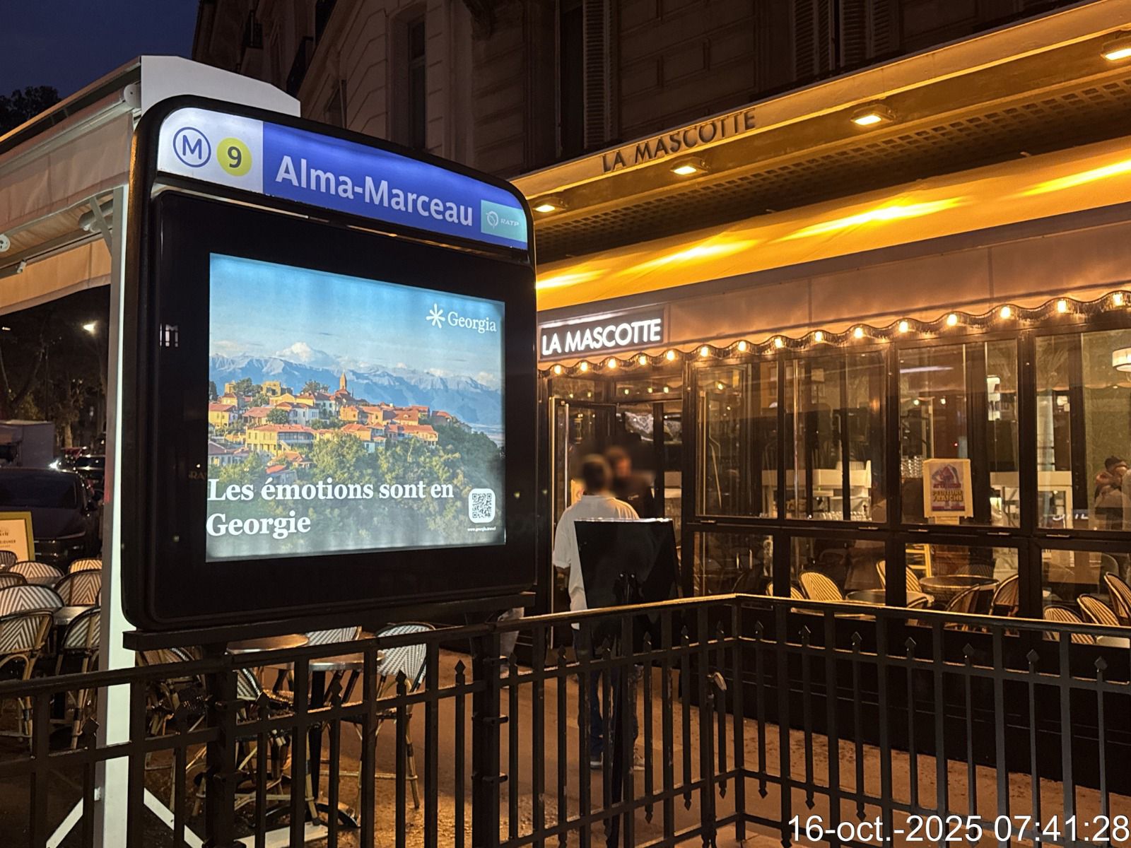 საქართველოს ტურიზმის ეროვნული ადმინისტრაცია საფრანგეთში მასშტაბურ მარკეტინგულ კამპანიას ატარებს. კამპანიის ფარგლებში,საფრანგეთის დედაქალაქში, პარიზის მეტროს სადგურებთან, 170 ლოკაციაზე, ქალაქის ცენტრალურ ქუჩებსა და მოედნებზე საქართველოს შესახებ ბანერები დამონტაჟდა. ბანერებზე საქართველოს ტურისტულად საინტერესო ადგილებია ასახული. მეტროს მგზავრებსა და გამვლელებს შეუძლიათ გაეცნონ საქართველოს ბუნებას, კულტურასა და ისტორიულ ქალაქებს.