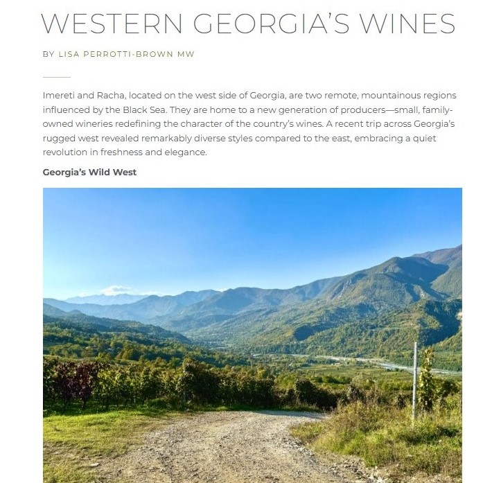 სტატიის ავტორი ამერიკელი ღვინის მაგისტრი ლისა პეროტი-ბრაუნი (Lisa Perrotti-Brown), რომელიც ღვინის ინდუსტრიაში 25 წელზე მეტია მოღვაწეობს, ღვინის ეროვნული სააგენტოსა და ამერიკული კომპანიის „Big Sky Ranch Inc” თანამშრომლობის ფარგლებში, დასავლეთ საქართველოს მიმდინარე წლის ოქტომბერში ეწვია.