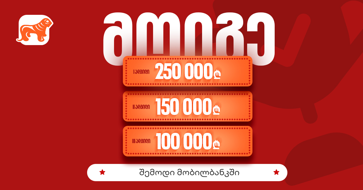 გათამაშების დეტალური პირობების გასაცნობად ეწვიეთ საქართველოს ბანკის ვებგვერდს. გათამაშებაში ჩართვისთვის განაახლეთ საქართველოს ბანკის მობილბანკი, ხოლო თუ ჯერ არ სარგებლობთ აპლიკაციით, გადმოწერეთ მარტივად.