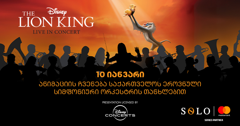 10 იანვარს, უყურეთ Disney-ს ლეგენდარულ ანიმაციურ ფილმს – „მეფე ლომს“, საქართველოს ეროვნული სიმფონიური ორკესტრის ცოცხალი შესრულების თანხლებით და შეიქმენით ჯადოსნური საახალწლო განწყობა SOLO-სთან ერთად.