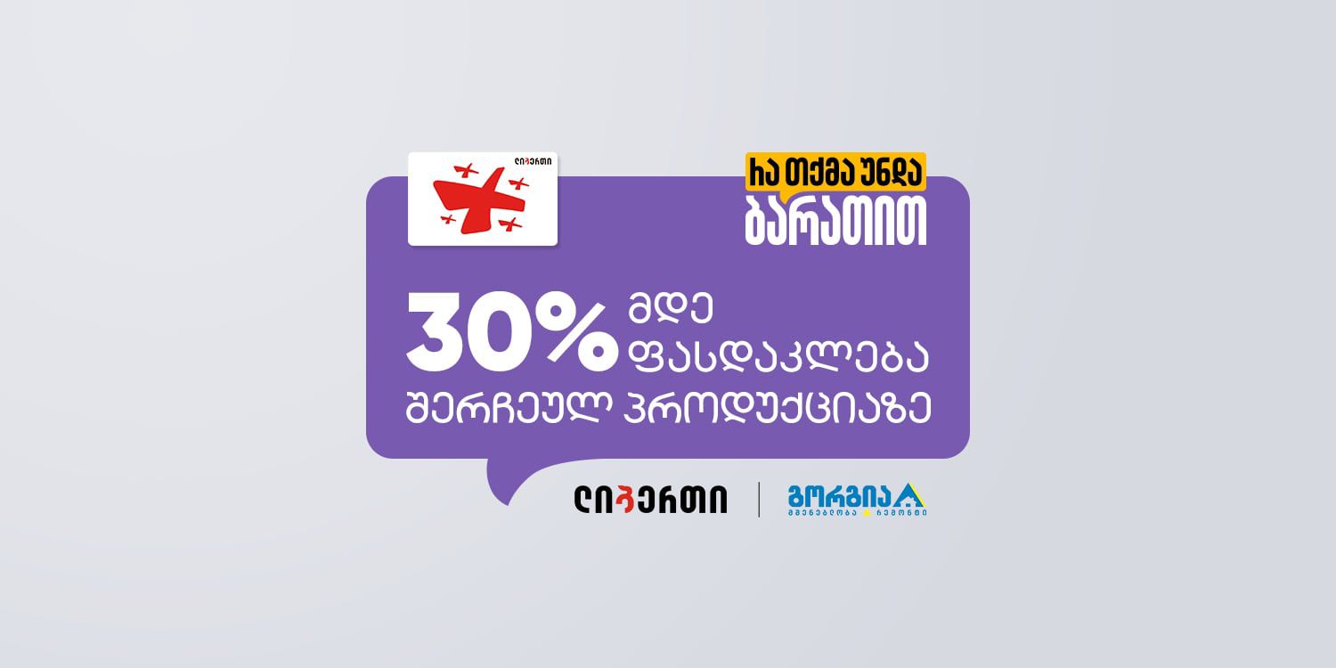 ლიბერთის და გორგიას ერთობლივი, სპეციალური სოციალური ინიციატივის ფარგლებში, ლიბერთის სოციალური ბარათის მფლობელები, გორგიას ნებისმიერ ფილიალში, მთელი ქვეყნის მასშტაბით, შერჩეულ პროდუქციაზე 30%-მდე ფასდაკლებით ისარგებლებენ.