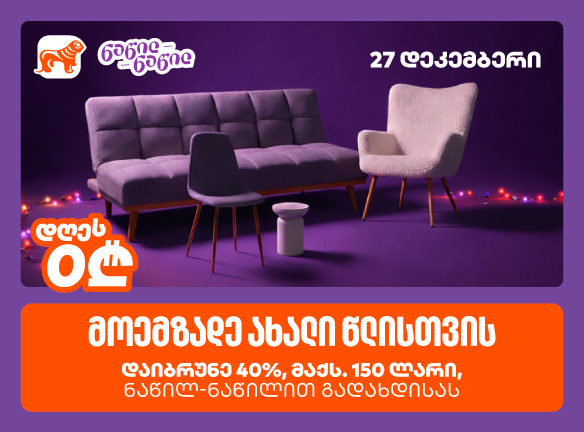 შეთავაზების ფარგლებში, 27 დეკემბერს, ის მომხმარებლები რომლებიც საქართველოს ბანკის ნაწილ-ნაწილ გადახდით ისარგებლებენ, JYSK-ში შოპინგისას 40%-იან ქეშბექს მიიღებენ. (მაქსიმუმ 150 ლარი).
