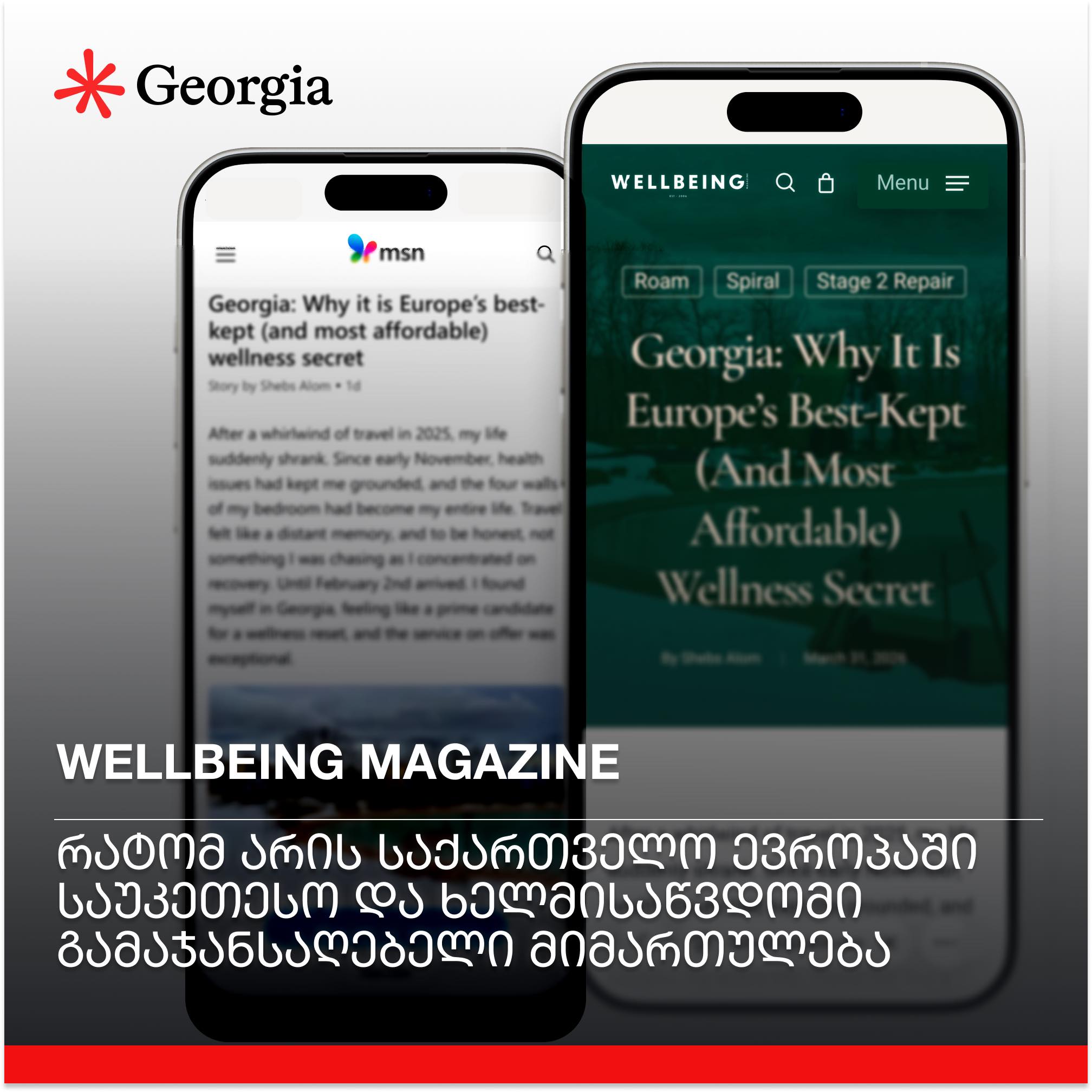 საქართველოს ეკონომიკისა და მდგრადი განვითარების სამინისტროს ტურიზმის ეროვნული ადმინისტრაციის მარკეტინგული კამპანიის ფარგლებში ცნობილმა ბრიტანულმა სამოგზაურო გამოცემამ Wellbeing Magazine საქართველოს შესახებ სტატია მოამზადა, რომელიც Microsoft-ის პორტალითაც MSN გავრცელდა.
