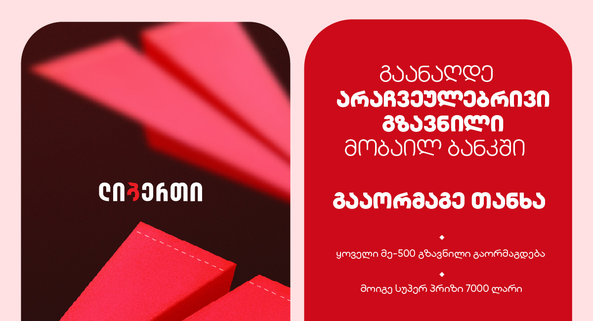 ლიბერთი ბანკმა საერთაშორისო ფულადი გზავნილების კამპანია „არაჩვეულებრივი გზავნილი“ დაიწყო, რომლის ფარგლებშიც მომხმარებლებს შესაძლებლობა ექნებათ, საერთაშორისო ფულადი გზავნილების ციფრულ ბანკში განაღდებისას, განსაკუთრებულ კურსთან ერთად დამატებითი სარგებელი მიიღონ.