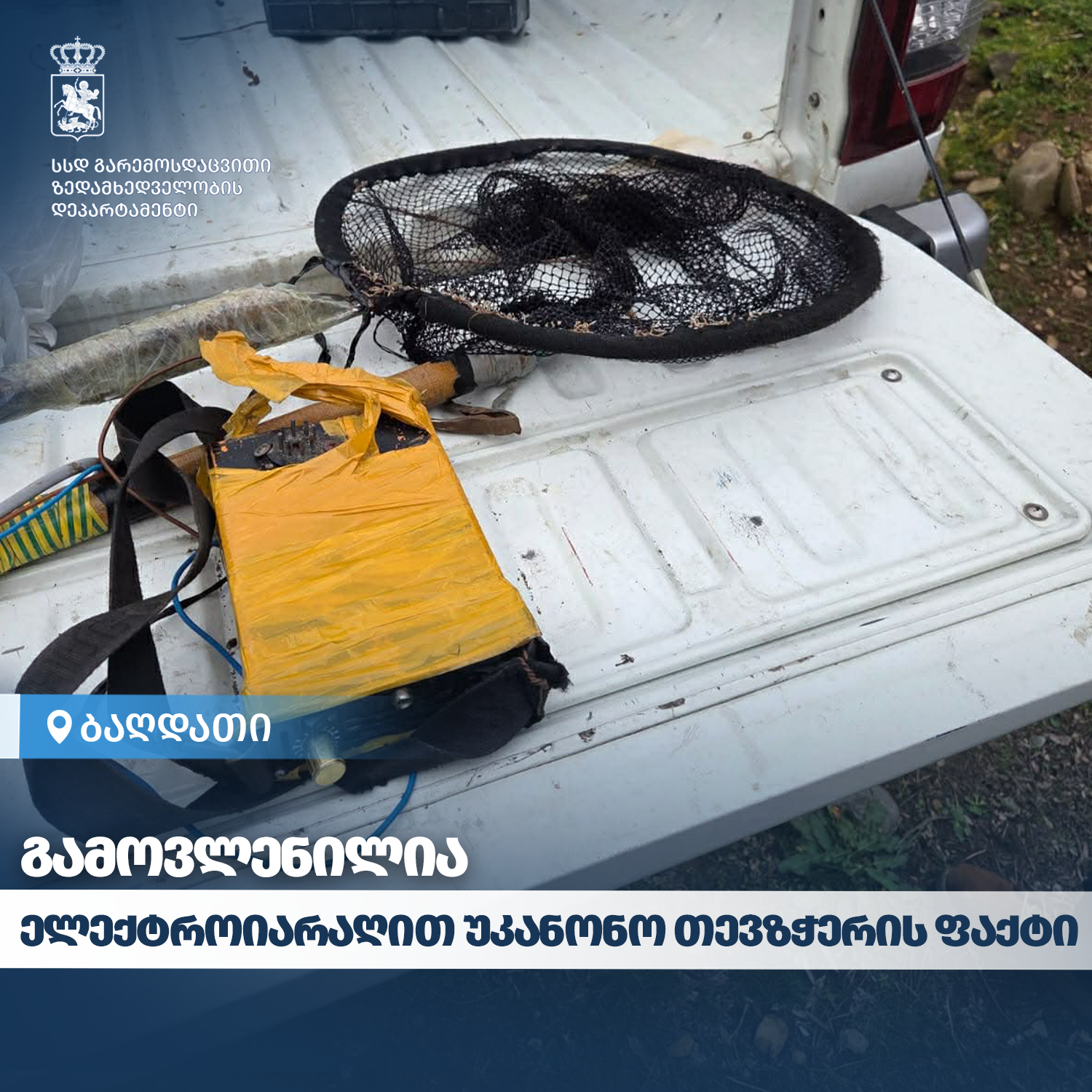 გარემოს დაცვისა და სოფლის მეურნეობის სამინისტროს გარემოსდაცვითი ზედამხედველობის დეპარტამენტის დასავლეთის რეგიონული სამმართველოს თანამშრომლებმა ბაღდათის მუნიციპალიტეტში უკანონო თევზჭერის ფაქტი გამოავლინეს.