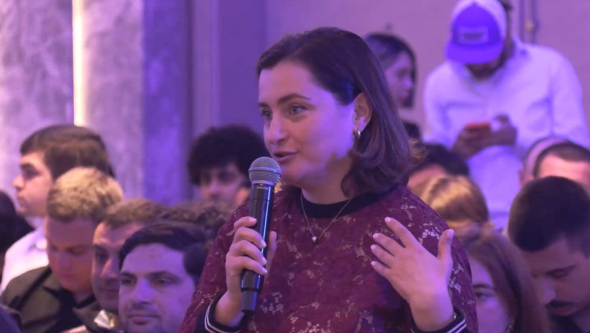 „მეორე საკითხი მინდა აღვნიშნო „გრანტების კანონთან“ დაკავშირებით, იმიტომ, რომ მე, როგორც მეწარმეს, ფაქტობრივად ყველა ტიპის მხარდაჭერა მაქვს მიღებული როგორც სახელმწიფო, ისე კერძო სექტორიდან და ძალიან აქტუალურია ეს ახალგაზრდებისთვის. სხვათა შორის, მე აქციებზე ვიდექი, ყველა აქციაზე, არც ერთი არ ჩამიგდია, როდესაც ვაპროტესტებდით „გრანტების კანონს“ და ეს ძალიან „ბუასავით“ ჩანდა, ყველას ეთაკილებოდა, რატომ უნდა ყოფილიყო აგენტი. მაგრამ, ახლა მინდა, რომ ჩემი პრაქტიკული გამოცდილება გაგიზიაროთ: როგორც მეწარმეს, უკვე მეორედ დამიკვეთა ჩეხეთის კარიტასმა, ტენდერის პირობების გავლით, ფიზიკური აქტივობის საბავშვო ავეჯის შეტანა სახელმწიფო ბაღებში და ჩვეულებრივ გავიარეთ ეს პროცედურა. მიმართეს სახელმწიფოს, მართალია, ორი თვე ველოდეთ, მაგრამ ჩვეულებრივ მივიღეთ თანხმობა და ჩავაბარეთ ეს პროდუქცია. ასევე, ახლა, GIZ-ის და UNDP-ის, ერთ-ერთი ყველაზე მსხვილი დონორი ორგანიზაციების პროექტები მიმდინარეობს, ჩვეულებრივ რეგისტრირდებიან, იღებენ ნებართვას და ჩვენც, მეწარმეებიც ჩვეულებრივ ვსარგებლობთ ამ პირობებით. ამით იმის აღნიშნვა მინდა, რომ ახლა შეიძლება ტურბულენტურ ზონაში ვართ, მაგრამ ახალგაზრდებს არ მინდა, რომ შეეშინდეთ, ეს ორგანიზაციებიც გაერკვევიან რა პროცედურაა, ჩვენც, მეწარმეებიც გავერკვევით და მე, პირადი გამოცდილებით, უკვე ძალიან პოზიტიურად ვუყურებ ამ პროცესს. ერთადერთი, რაც მინდა რომ გთხოვოთ, არის ის, რომ თქვენნაირი გულანთებული ადამიანები რომ ტოპ-მენეჯმენტში არიან, ძალიან კარგია ეს, მაგრამ, ბიუროკრატიის ნაწილში ცოტა გვიჭირს ხოლმე, მაგალითად, ორი თვე არ შეიძლება სჭირდებოდეს ელემენტარული ნებართვის მიღებას და თუ ამაზე გაამახვილებთ ყურადღებას, ძალიან სასიამოვნო იქნება,“ – განაცხადა ნინო რაზმაძემ.