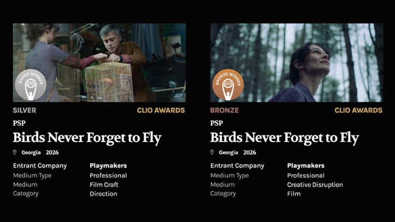 PSP-ს დამოუკიდებლობის დღისადმი (2025) მიძღვნილმა კამპანიამ „ჩიტებს ფრენა არ ავიწყდებათ“ მსოფლიოს პრესტიჟულ შემოქმედებით დაჯილდოვებზე CLIO Awards 2 ჯილდო მოიპოვა: ვერცხლი – Film Direction -და ბრინჯაო – Creative Disruption.