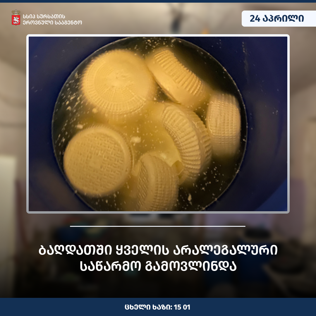 სურსათის ეროვნული სააგენტოს იმერეთის დეპარტამენტის ინსპექტორებმა ბაღდათში ყველის არალეგალურ საწარმოს საქმიანობა შეუჩერეს.