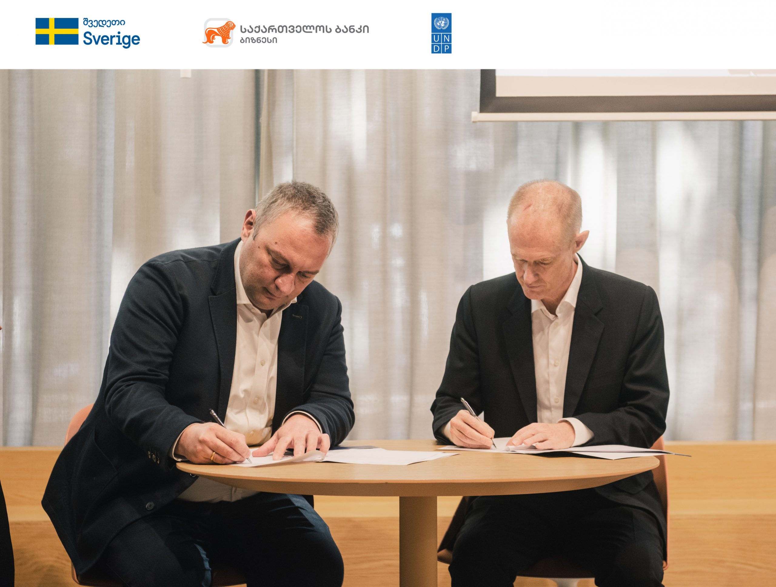 შეთანხმებას ხელი მოაწერეს UNDP-ის ხელმძღვანელმა საქართველოში ნიკ ბერესფორდმა და საქართველოს ბანკის, მცირე და საშუალო ბიზნესის მიმართულების ხელმძღვანელმა ზურაბ მასურაშვილმა.