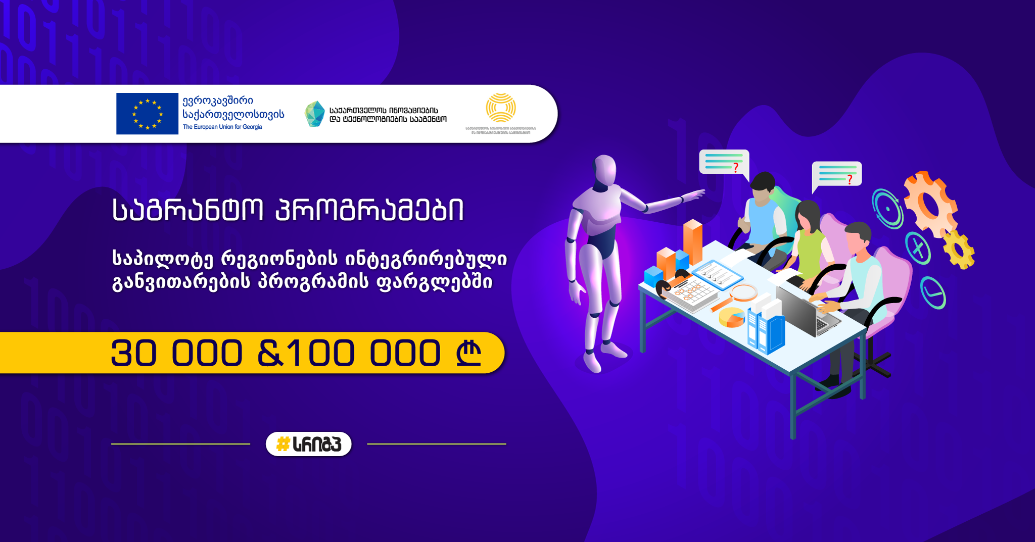 საქართველოს ინოვაციების და ტექნოლოგიების სააგენტო, ევროკავშირის საგრანტო დაფინანსებით, „2020-2022 წლების საპილოტე რეგიონების ინტეგრირებული განვითარების პროგრამის“ ფარგლებში, ახალ საგრანტო პროგრამებს აცხადებს შემდეგ რეგიონებში: იმერეთი, კახეთი, გურია, რაჭა-ლეჩხუმი და ქვემო სვანეთი. ერთიანი რეგიონული განვითარების პოლიტიკისა და ევროკავშირის ტერიტორიული დაგეგმვის უახლესი მიდგომების შესაბამისად, პროექტის მიზანია, რეგიონული სამეწარმეო ინოვაციური ეკოსისტემის განვითარება, ინოვაციური საწარმოების შექმნის სტიმულირება და ჩართვა ქვეყნის ეკონომიკაში.