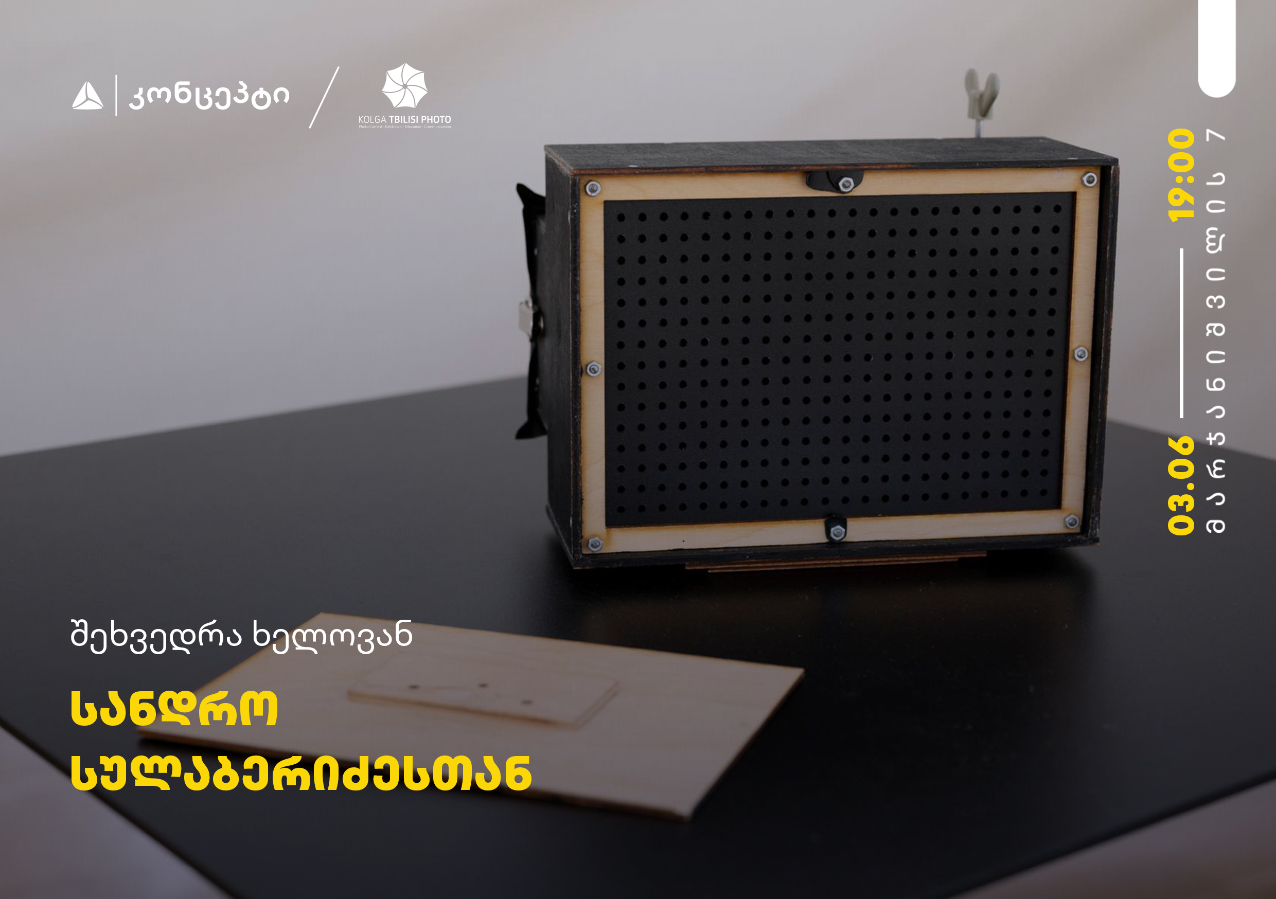 მიმდინარე წლის 3 ივნისს, 19:00 საათზე, თიბისი კონცეპტის სივრცე, მარჯანიშვილის 7-ში, უმასპინძლებს შეხვედრას ხელოვან სანდრო სულაბერიძესთან და ირინა პოპიაშვილთან, რომელიც კურატორი და თავისუფალი უნივერსიტეტის ვიზუალური ხელოვნებისა და დიზაინის სკოლის დამფუძნებელი და დეკანია. შეხვედრაზე საუბარი იქნება ხელოვან სანდრო სულაბერიძის შემოქმედებაზე და „ქოლგა თბილისი ფოტო 2022″ -ის ფარგლებში გამართულ გამოფენაზე „გარე თვალით დამკვირვებელი”.