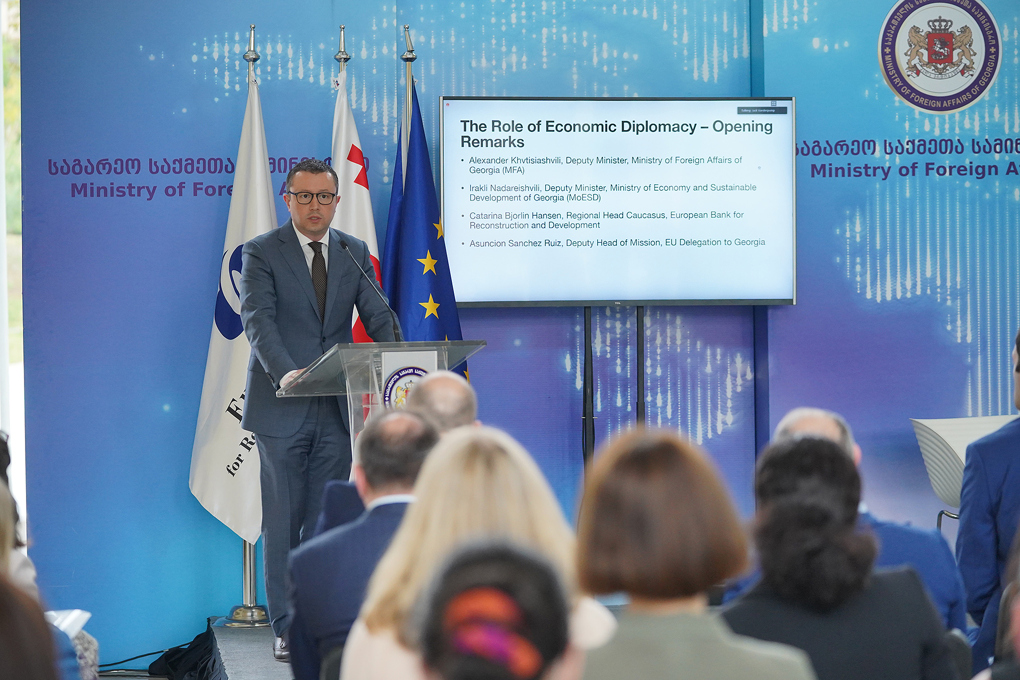 „ძალიან მნიშვნელოვანია საქართველოს საელჩოების როლის გაზრდა როგორც ინვესტიციების მოზიდვის თვალსაზრისით, ასევე საექსპორტო ბაზრების უფრო ეფექტური ათვისებისა და ექსპორტის წახალისებისთვის” – ამის შესახებ ეკონომიკის მინისტრის მოადგილემ, ირაკლი ნადარეიშვილმა ეკონომიკური დიპლომატიის ღონისძიებაზე განაცხადა, რომელიც ცერემონიების სასახლეში გაიმართა და მასში საგარეო საქმეთა სამინისტროს, ევროკავშირის, EBRD-ისა და სააგენტოს „აწარმოე საქართველოში” წარმომადგენლები მონაწილეობდნენ.