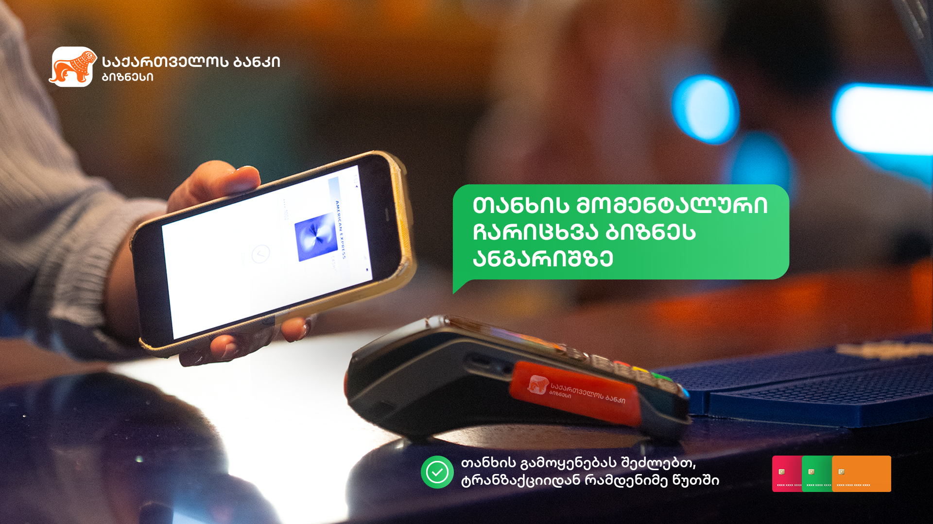 საქართველოს ბანკიბიზნესის განვითარებისთვის საჭირო, ახალი შესაძლებლობების შექმნას განაგრძობს. ამჯერად ბანკმა ბიზნესს ანგარიშზეთანხის მომენტალური ჩარიცხვა შესთავაზა. რაც იმან ნიშნავს, რომ ამიერიდან ნებისმიერი ბანკის, ნებისმიერი ბარათით, (მათ შორის არაქართული ბარათით განხორციელებული ტრანზაქციისას) მომხმარებლის მიერ გადახდილი თანხა ბიზნესს რამოდენიმე წუთში ჩაერიცხება.