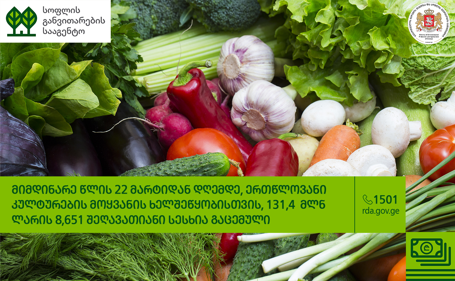 „შეღავათიანი აგროკრედიტის“ ერთწლოვანი კულტურების დაფინანსების ქვეკომპონენტის ფარგლებში, საფინანსო ინსტიტუტები სესხებს 2022 წლის 31 ოქტომბრის ჩათვლით გასცემენ.