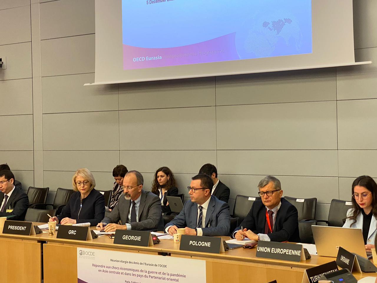 ეკონომიკისა და მდგრადი განვითარების მინისტრის მოადგილე ირაკლი ნადარეიშვილი OECD-ს (ეკონომიკური თანამშრომლობისა და განვითარების ორგანიზაცია) ორგანიზებით დაგეგმილ წლიურ შეხვედრაში OECD friends of Eurasia enlarged session – ში მონაწილეობს, სადაც განიხილება უკრაინის ომის გავლენა რეგიონის ეკონომიკაზე და არსებული გამოწვევები, მათი გადაჭრის გზები და შესაძლებლობები რეგიონული თანამშრომლობის კუთხით, აგრეთვე 2023 წელს ქ. თბილისში დაგეგმილი მინისტერიალის, ევრაზიის კვირეულის მთავარი თემები.