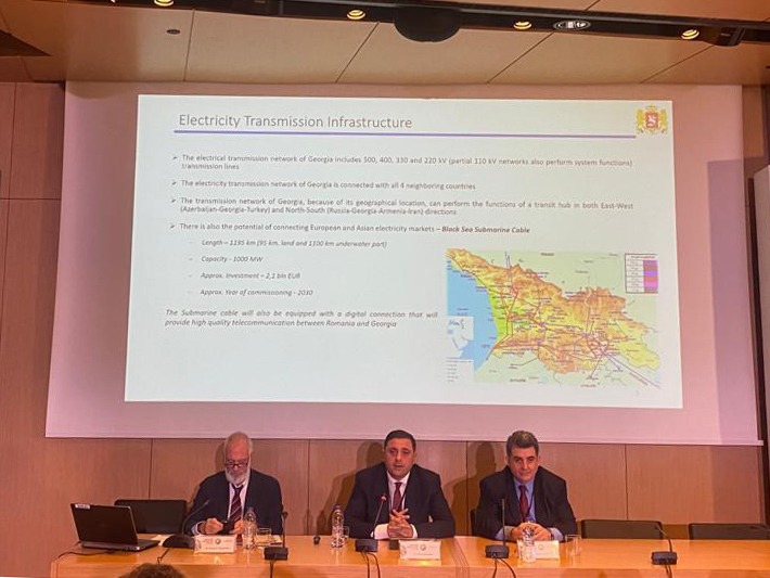 მინისტრის მოადგილემ განსაკუთრებული აქცენტი გააკეთა განახლებადი ენერგიების მდგრად და ინტენსიურ ათვისებაზე, აგრეთვე ახალი ტექნოლოგიების განვითარებასა და სტრატეგიული ინფრასტრუქტურული პროექტების განხორციელებაზე, განსაკუთრებით, შავი ზღვის ენერგო კაბელის პროექტზე, რომელიც საქართველოსა და შესაბამისად, სამხრეთ კავკასიის ენერგეტიკულ სისტემას ევროკავშირისას დააკავშირებს.