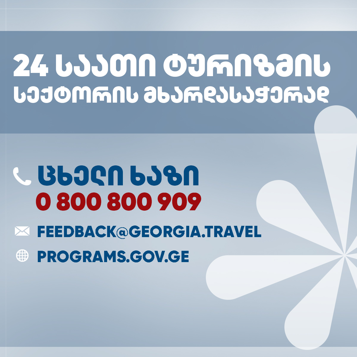 ტურიზმის სფეროში არსებული გამოწვევების გადაჭრის მიზნით, ტურიზმის ეროვნულმა ადმინისტრაციამ წელს, 4 ათასზე მეტ შეტყობინებაზე მოახდინა რეაგირება. ტურიზმის ინდუსტრიის წარმომადგენლებსა და მოგზაურებს საშუალება აქვთ ადმინისტრაციას24 საათიან რეჟიმში, ცხელხაზზე 0 800 800 909 დაუკავშირდნენ. ცხელ ხაზთან ერთად მუშაობსსაინფორმაციო ელექტრონული ფოსტა feedback@georgia.travelდა programs.gov.ge-ს ონლაინ ჩათი.