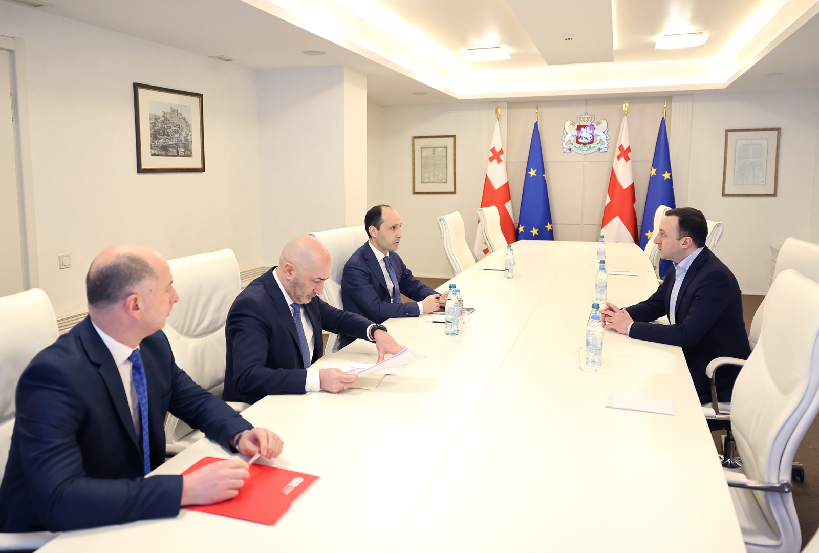 საქართველოს პრემიერ-მინისტრმა ირაკლი ღარიბაშვილმა სამუშაო შეხვედრა გამართა ვიცე-პრემიერთან, ეკონომიკისა და მდგრადი განვითარების მინისტრთან ლევან დავითაშვილთან, მინისტრის მოადგილესთან გურამ გურამიშვილთან და სს „საქართველოს რკინიგზის” გენერალურ დირექტორთან დავით ფერაძესთან.