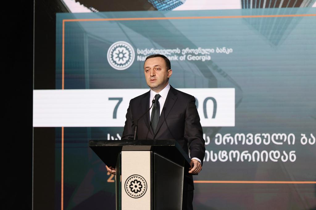 „ბატონმა კობამ თავის გამოსვლაში აღნიშნა ეროვნული ბანკის მნიშვნელობა და გაიხსენა ისტორია. ასევე მინდა ჩემი მხრიდან დავადასტურო, რომ ჩვენ რა თქმა უნდა, პატივს ვცემთ ბანკის დამოუკიდებლობას, რომელიც კონსტიტუციითაა გამყარებული, მაგრამ აქვე უნდა აღვნიშნო, რომ რა თქმა უნდა, მთავრობას და ეროვნულ ბანკს ჭირდება მეტად კოორდინირებული, ჯანსაღი თანამშრომლობა. სწორედ ამის შედეგია ის, რაც მოგახსენეთ. მინდა, გულწრფელი მადლობა გადავუხადო ბატონ კობა გვენეტაძეს. ჩვენ არა ერთი საუბარი გვქონია, ყოფილა განსხვავებული შეხედულებებიც, ჯანსაღი კამათიც, კრიტიკაც, მაგრამ საბოლოო ჯამში ყოველთვის ვთანხმდებოდით მთავარზე – ქვეყნის ეროვნულ ინტერესებზე. რა ჭირდებოდა და რა ჭირდება ქვეყანას მოცემულ მომენტში და მოცემულ დროს. ამ სულისკვეთებითა და პასუხისმგებლობით ვიმუშავეთ ჩვენ ერთად 2 წელი და ხედავთ, რომ შედეგები მართლაც შთამბეჭდავია. ბანკის ერთ-ერთი უმნიშვნელოვანესი ამოცანაა სწორედ ფინანსური სტაბილურობის ხელშეწყობა, როგორც მდგრადი ეკონომიკის წინაპირობა და ბოლოს მინდა ვთქვა, რომ ბატონი კობას მიზანმიმართული, ქმედითი და კონსტრუქციული გადაწყვეტილებებით ეროვნული ბანკის მუშაობა იყო უაღრესად დადებითი. კიდევ ერთხელ მადლობა, ბატონო კობა, გაწეული სამსახურისთვის. თქვენ ნამდვილად საპასუხისმგებლო თანამდებობა გეკავათ ბოლო 7 წლის განმავლობაში, თქვენ არაერთი პრემიერ-მინისტრი გამოიცვალეთ და მე ახლა გემშვიდობებით. გისურვებთ წარმატებას, დიდი მადლობა,”- აღნიშნა პრემიერმა.