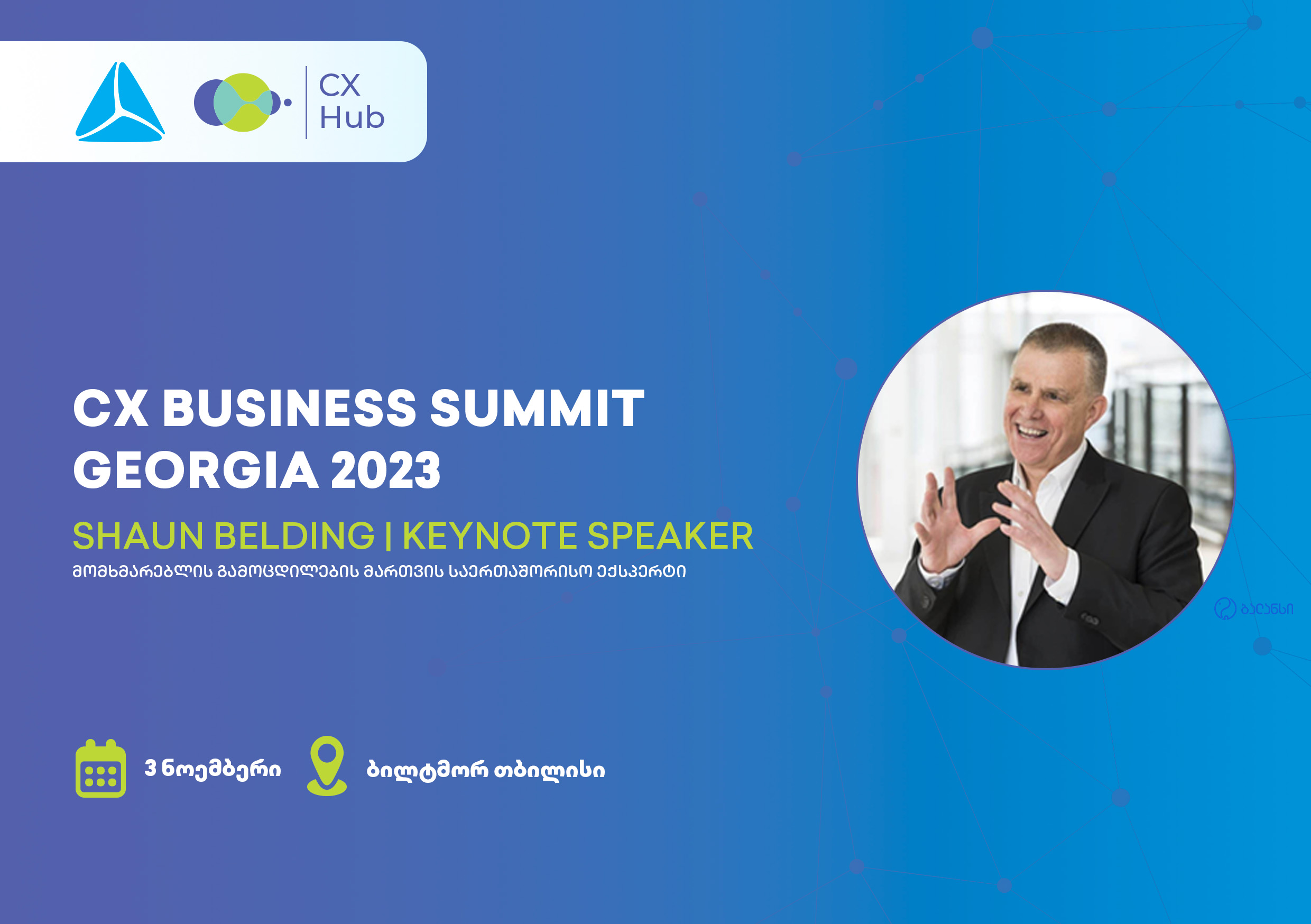 CX Business Summit-ზე მთავარი სპიკერი საერთაშორისო CX ექსპერტი, კონსულტანტი და არაერთი წიგნის ავტორი – Shaun Belding იქნება. სამიტი კომპანიების მენეჯმენტს და დამსწრე აუდიტორიას მისცემს CX მართვის მიდგომების და სისტემების გაცნობის, ამ კუთხით გამოცდილების გაზიარებისა და ნეთვორქინგის შესაძლებლობას.